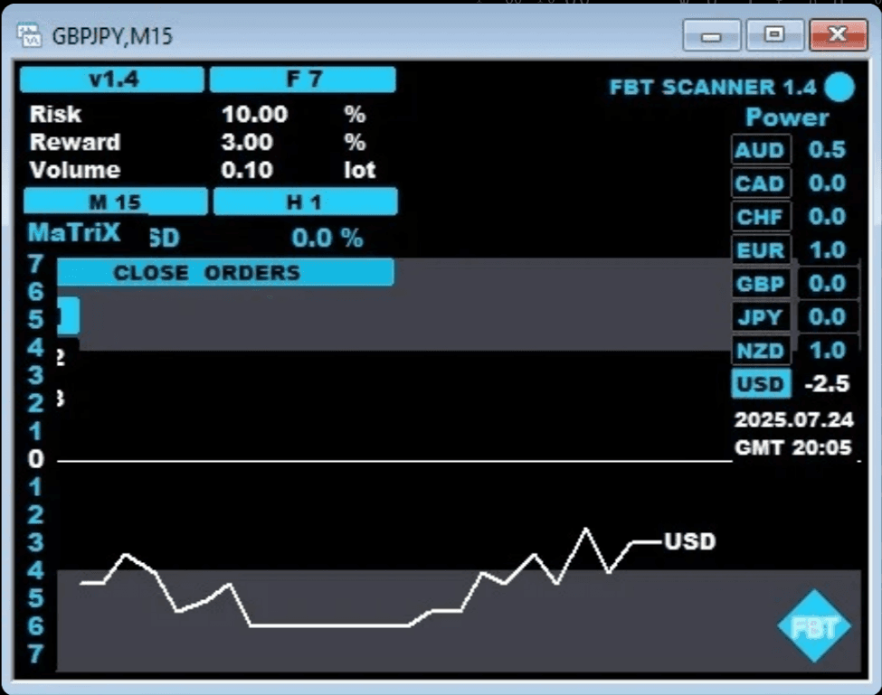 El scanner analiza las 8 divisas principales (USD, EUR, GBP, JPY, CAD, CHF, AUD y NZD), combinándolas en 28 pares para medir la fuerza y debilidad real de cada moneda.